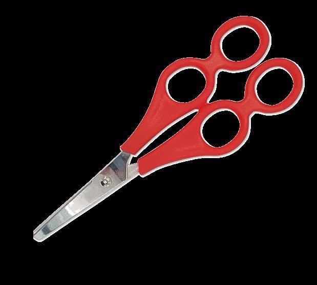 Die doppelten Kunststoff-Griffaugen der Begleitschere erlauben es einem Erwachsenen, ein Kind bei dem ersten Umgang mit der Schere zu unterstützen.