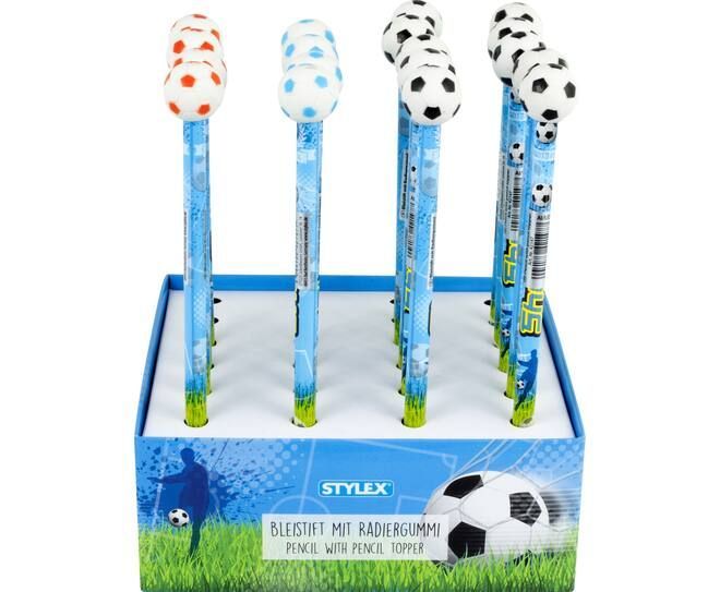 pro Stück. Bleistifte mit Radiergummi-Topper „Fußball“, Minenhärtegrad: HB