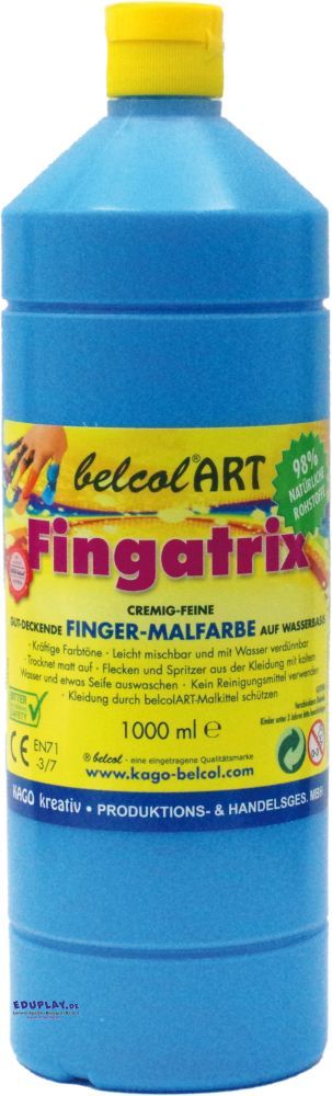 ÖKO-Fingermalfarbe auf Wasserbasis. Die Farben sind cremig, kräftig, sehr gut deckend, mit Wasser verdünnbar, leicht von der Haut u. Kleidung abwaschbar. Flasche: Ø 8 x 26 cm