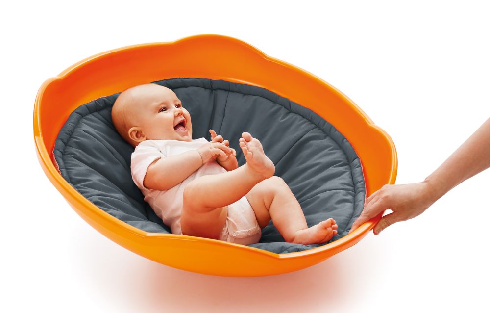 Weiches, graues Kissen um komfortabel im Mini Top zu liegen. Wattierter Stoff mit gummierten Punkten auf der Unterseite, damit das Kissen nicht verrutscht. Ø 64 cm
