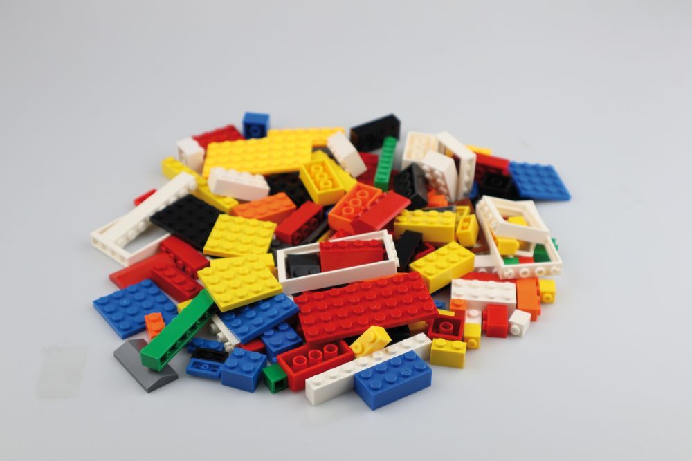 Basisset 500 Teile, in 8 Farben, kleine Platten, Fenster, Füren, verschiedene Bausteingrößen, kompatibel mit Klemmbausteinen anderer Hersteller. Inkl. Aufbewahrungsbox.