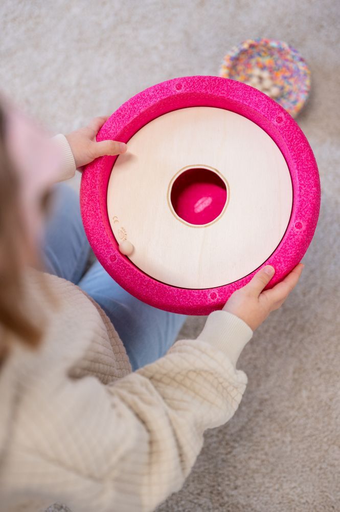 Durch die einzelne Öffnung wird der Fokus gebündelt. Ideal für gezielte Handlungen und wiederholendes Tun. Die Platte passt sich dem Spielbedürfnis des Kindes an und begleitet es über einen langen Zeitraum hinweg.