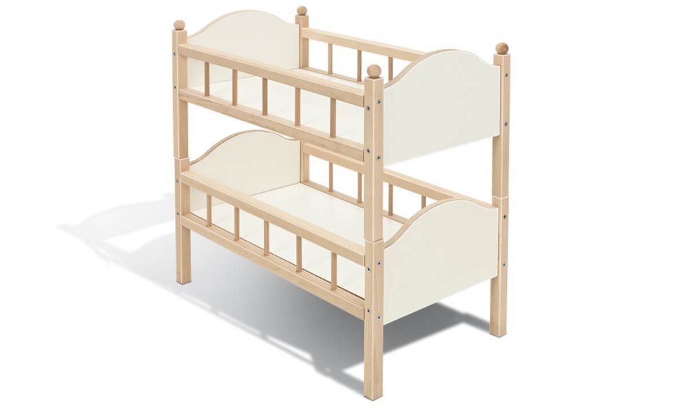 Entweder als zwei Einzelbetten oder als Hochbett verwendbar. Farbe: weiß. Ohne Bettzeug. (Maße: 50,5 x 29 x 53 cm, Material: aus einer kratzfesten Oberfläche)