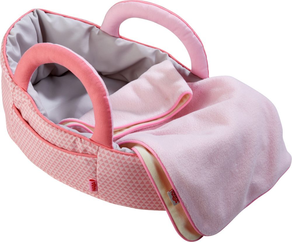 Die Puppentragetasche kann als Puppenbett oder Tragetasche genutzt werden, mit weicher Decke, (Maße: 38x25x15 cm)