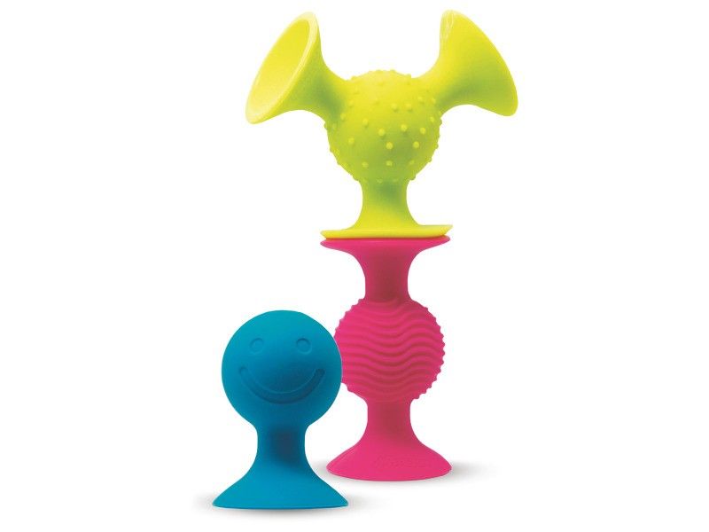 Hübsche Saugnäpfe bunt gefärbt, mit verschiedenen Texturen, die sich auf allen glatten Oberflächen anbringen lassen. Aus Silikon, Spülmaschinenfest. Höhe bis 7 cm, DM 4,7 cm