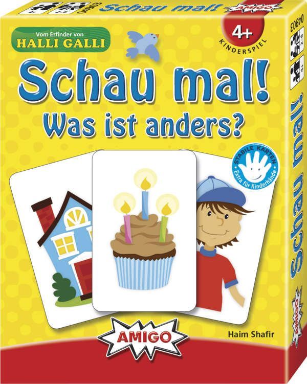 Was ist anders? So einfach und doch so schwer: Einmal kurz die Augen zu, und schon ist etwas anders. Aber was ist es bloß? Von fünf Karten wird eine umgedreht, wodurch sich die Abbildung etwas verändert. Hat da jemand das Licht im Haus angemacht oder hat der Junge seine Mütze umgedreht? Wer die Karte am schnellsten entdeckt, darf eine weitere dazulegen. Am Ende gewinnt derjenige, der das bessere Auge hat.
