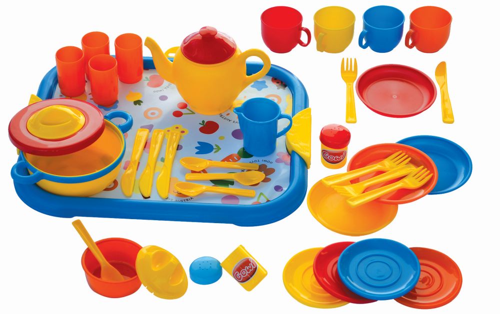 40 teilig – Tablett Größe: 39 x 35 cm, Der Kunststoff ist robust, formstabil und farbecht.