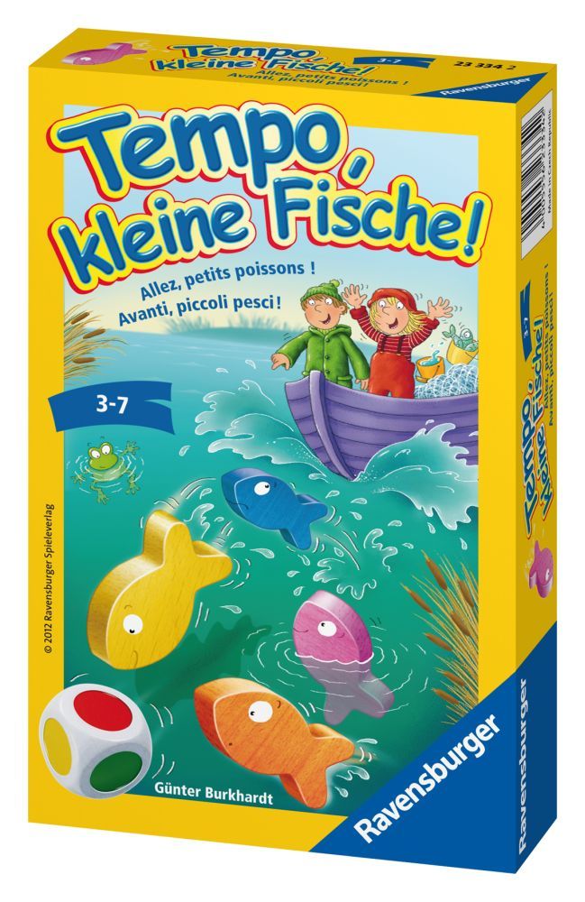 Spannung bis zum Schluss: Fische oder Fischerboot – wer gewinnt das Wettrennen zum Meer? Der Farbwürfel entscheidet, wer ziehen darf! Ganz viel Spielspaß für Klein, aber auch noch für Groß!