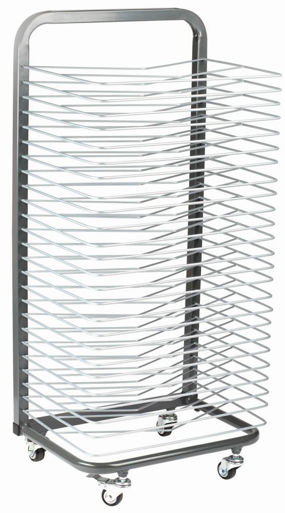 Größe L/B/H: 46 x 33 x 98 cm. Mit seinen 25 Lagen Platz für 25 Blätter im DIN A3- oder 50 im DIN A4-Format bereit. Mit vier praktischen und zwei feststellbaren Rädern.
