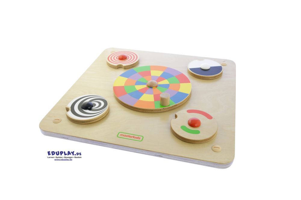 Faszinierendes Farb- und Bewegungsspiel! Die Muster regen die visuelle Wahrnehmung an und laden Kinder zu sensorischem und motorischem Entdecken ein. Die große Farbscheibe mit Handkurbel zeigt beim Drehen spannende Farbeffekte: Farben vermischen sich optisch, neue Muster entstehen. Die kleineren Scheiben lassen sich über Fingermulden bewegen und erzeugen ebenfalls faszinierende visuelle Effekte. Besonders beliebt ist das Spiel bei Kindern, die Freude an repetitiven Bewegungen haben – ideal auch zur Förderung von Kindern im Autismus-Spektrum.