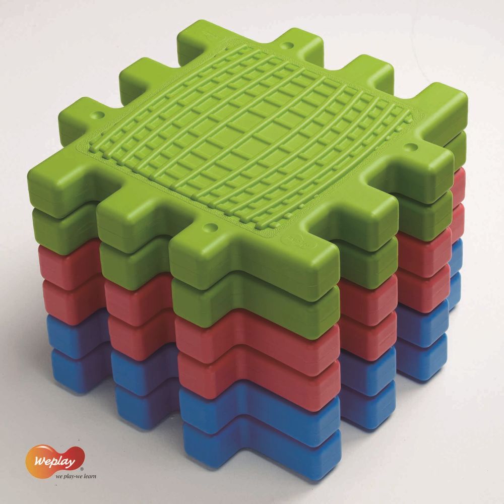 6 Elemente in quadratischer Form mit verschiedenen Fühlflächen 2x Punkte, 2x Linien, 2x Kreise. Kompatibel mit WeBlocks-Sets