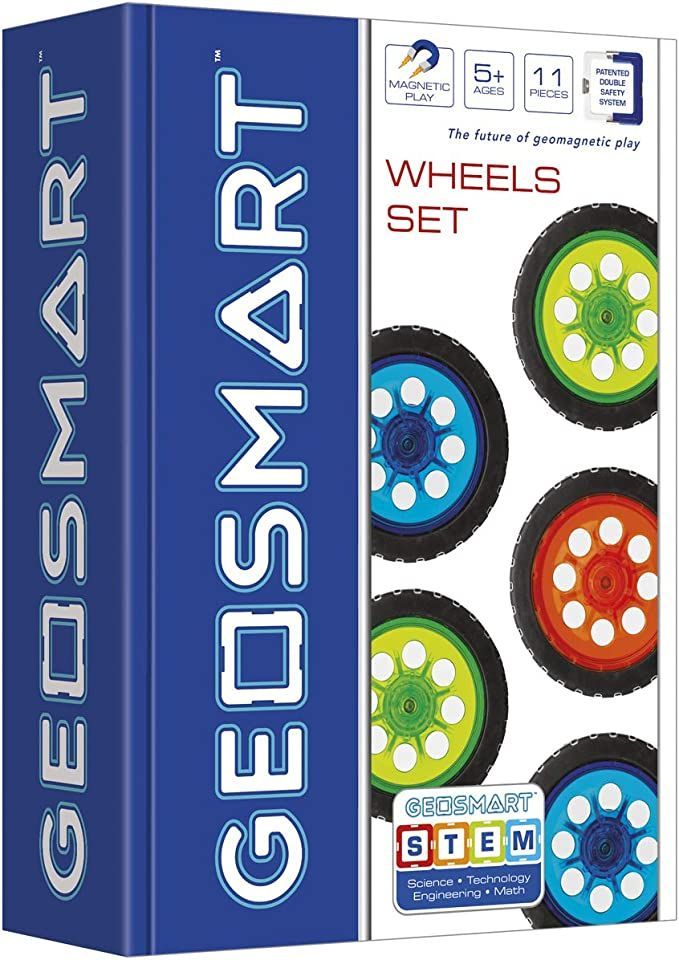 Magnetisches Konstruktionsspielzeug – Zusatzset Räder. Erweiterungsset zum Bau von coolen Fahrzeugen. Inhalt: 11 Teile (6 Räder, 3 Achsen, 2 Verbinder)