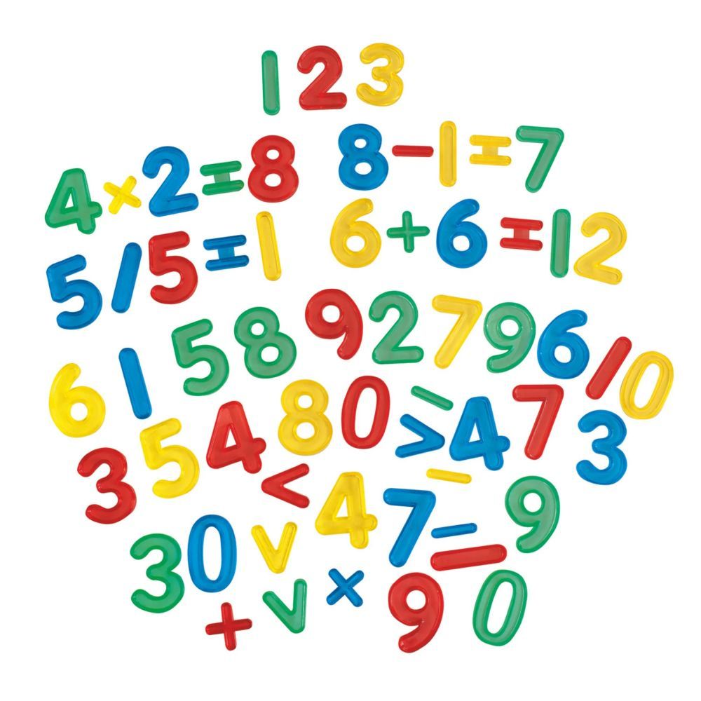 Transparente bunte Zahlen, für den Einsatz am Leuchttisch. (Inhalt: 48 Stk., Maße: Höhe 5,5 cm, Breite 4 cm, Dicke 5 mm, Material: Acryl)